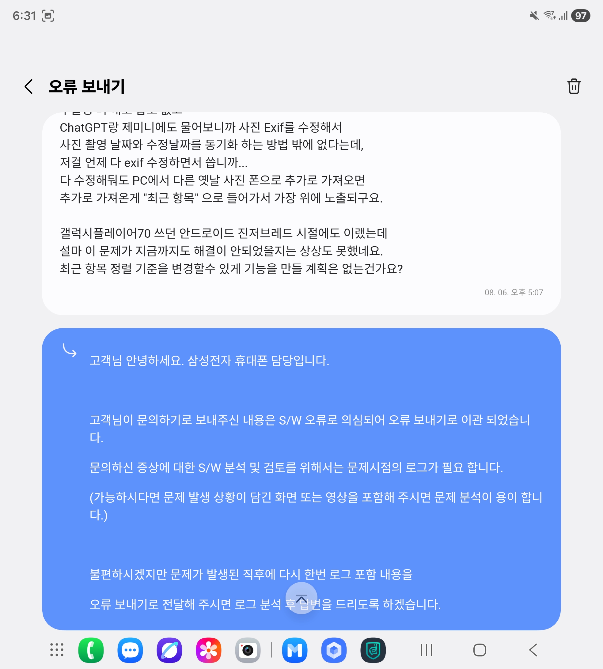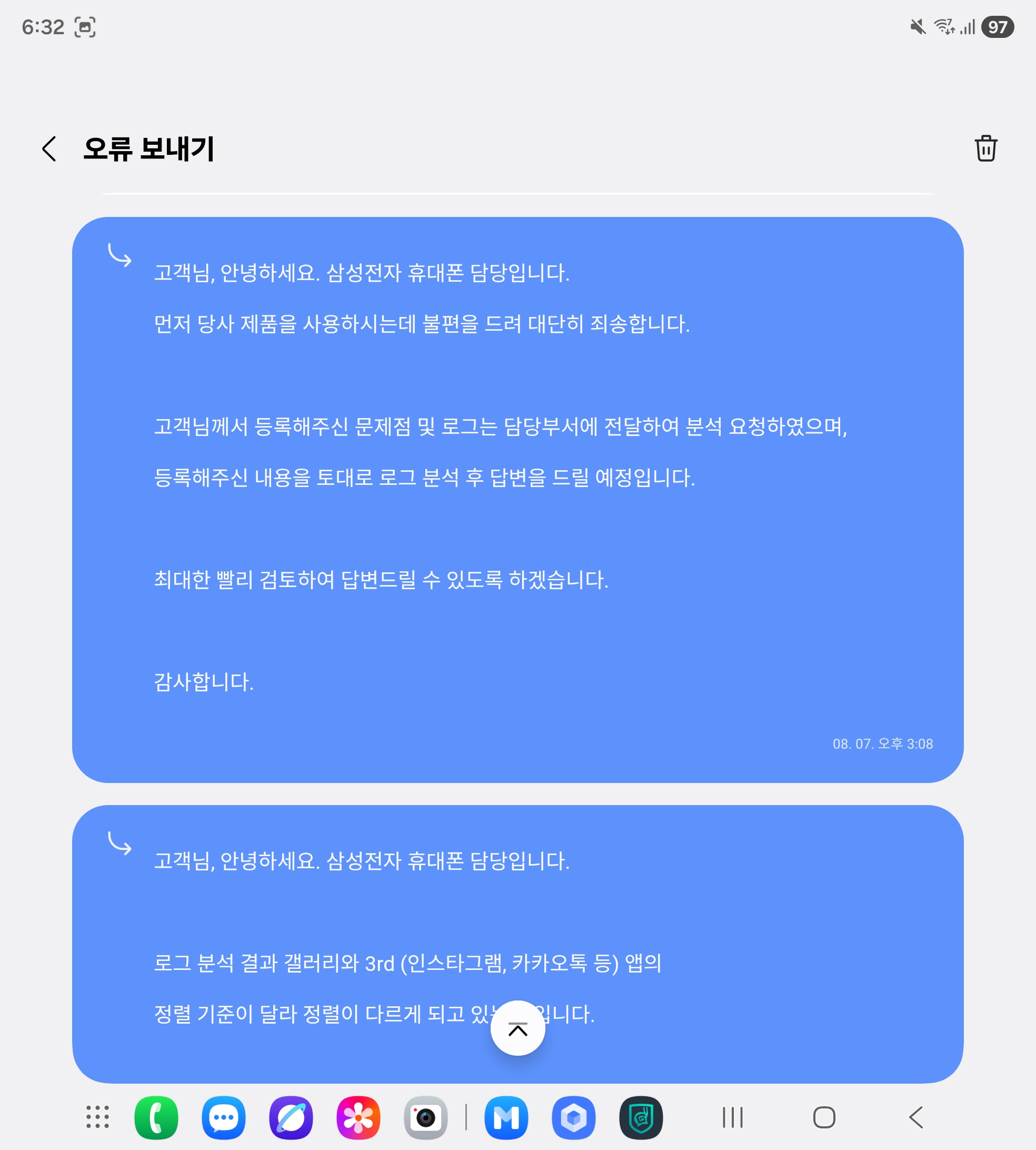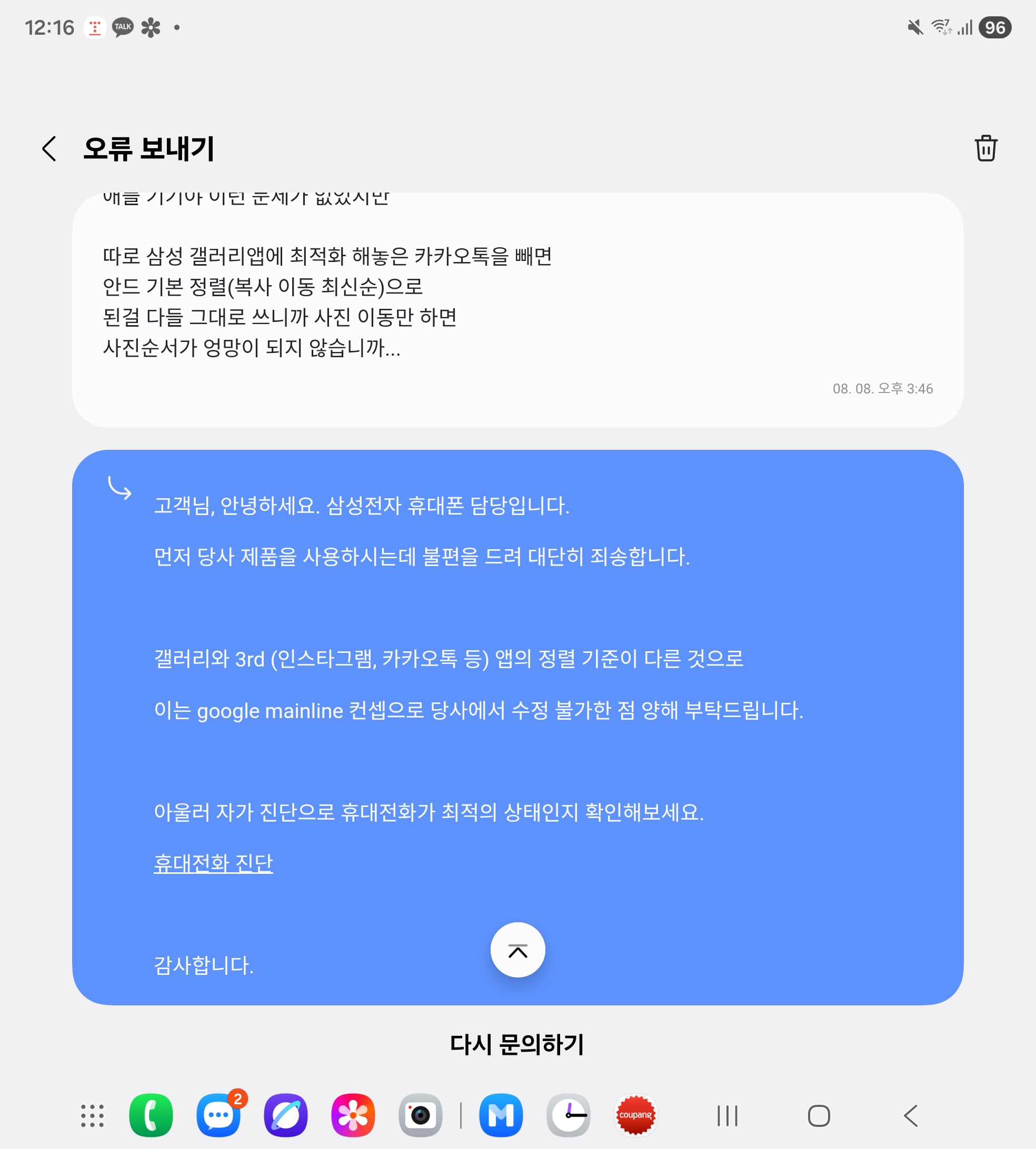 삼성 멤버스에 문의 넣은 내역도 있는데, 사용법 이후에 보여드리겠습니다.