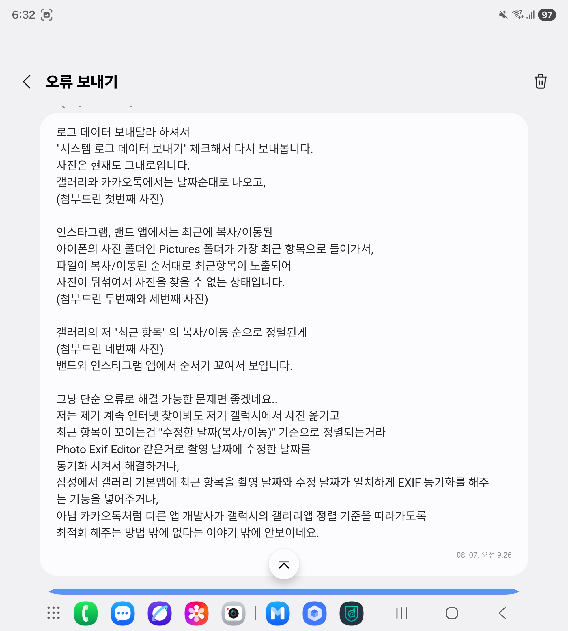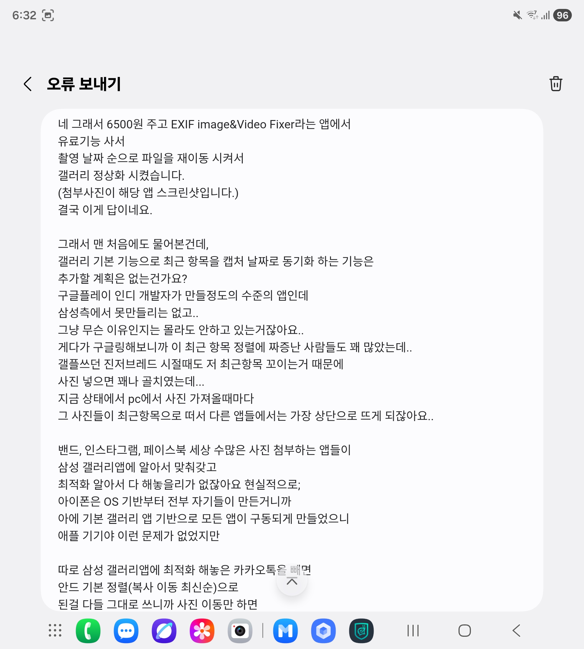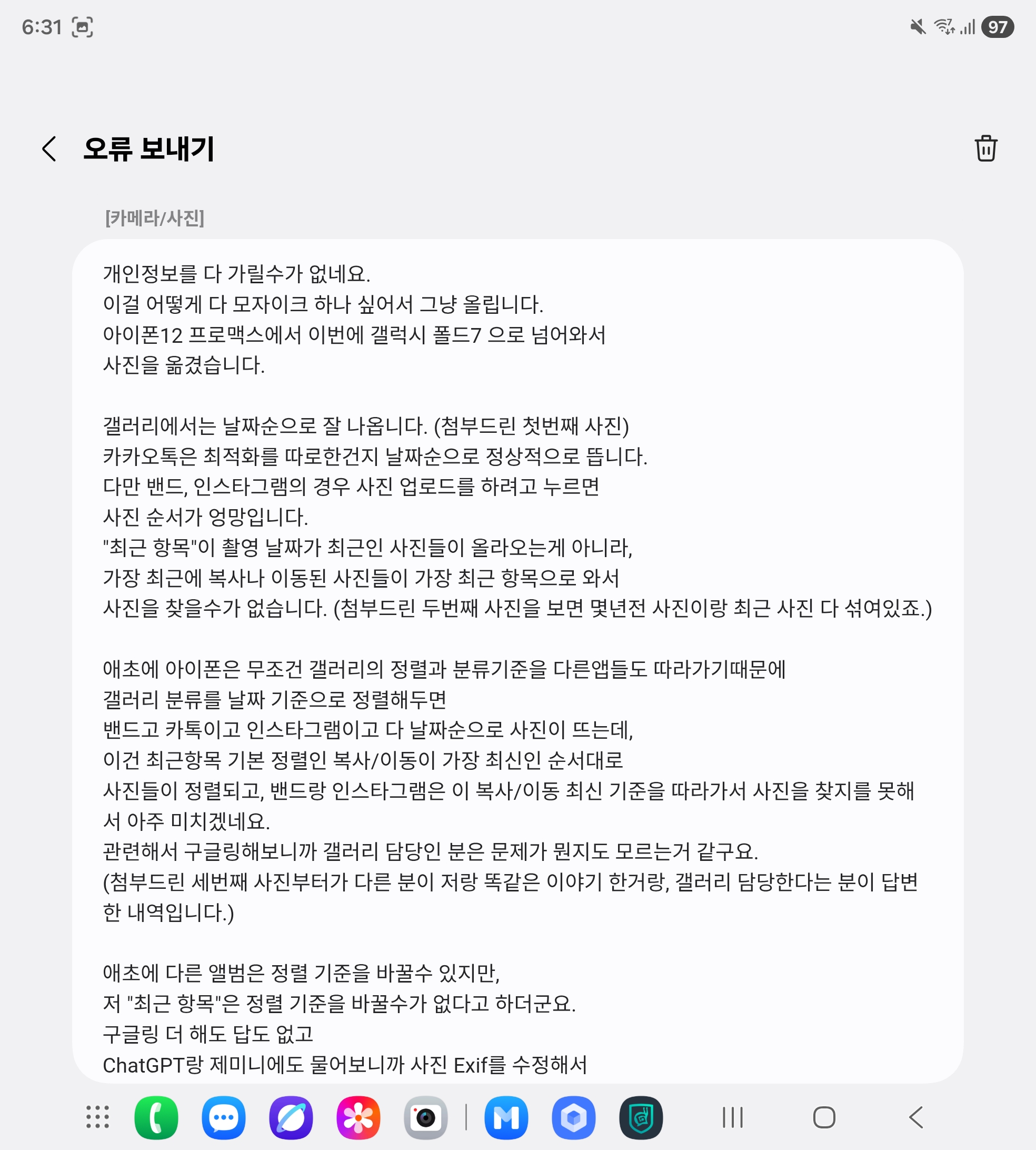 구형 안드로이드 기기는 이런 사진 정렬문제가 나도 큰 불편은 없었던거로 기억하는데