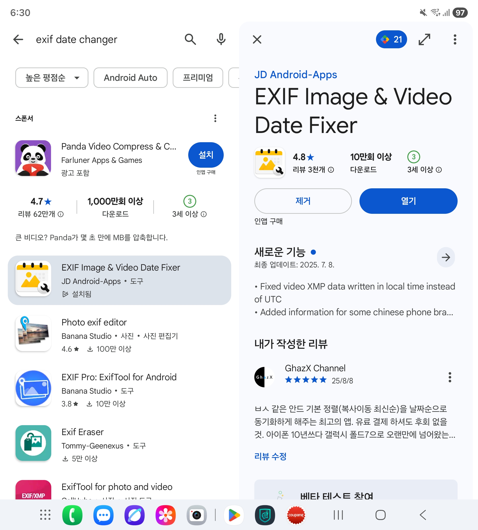 구글플레이 무료 Exif 수정앱들 다운해봤는데 안되고,