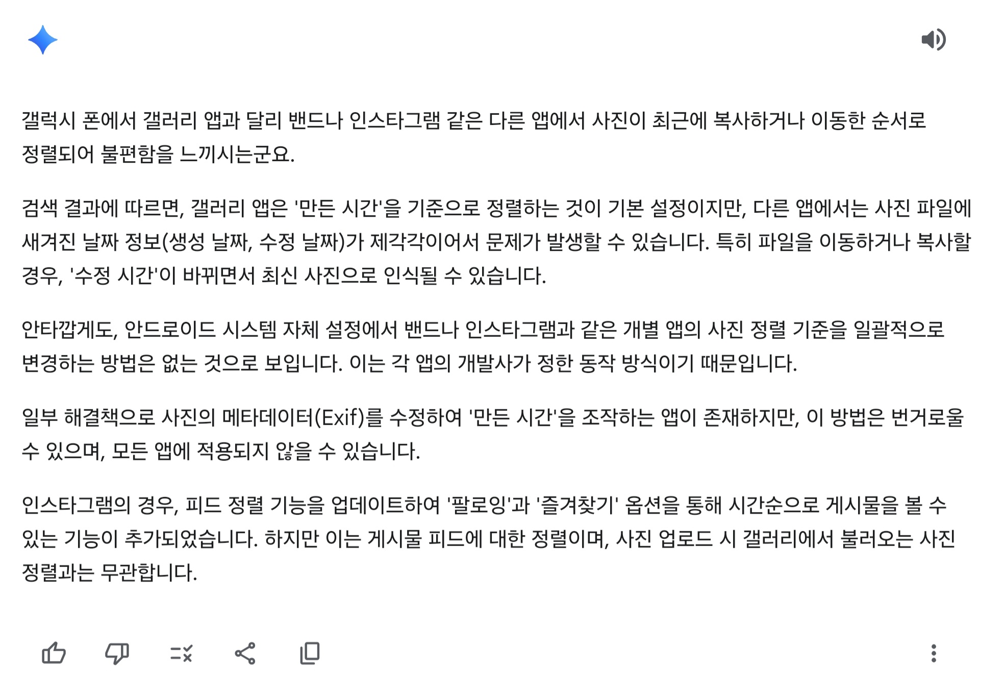 왜 아직도 갤러리 기본 기능으로 정렬 기능을 안 넣어준건지 이해가 안가네요.